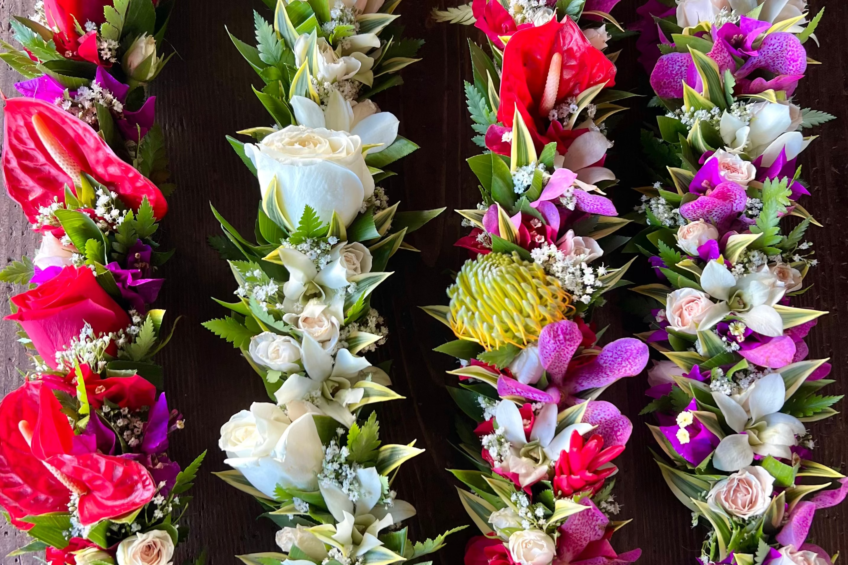 Handcrafted Maui lei made with thoughtfully sourced flowers from near and far.