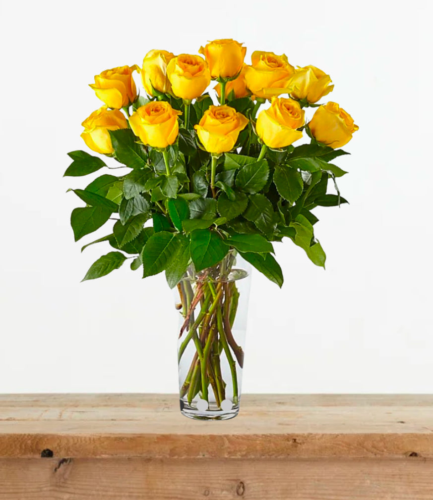 A dozen yellow roses arranged to offer warmth, hope, and quiet support.